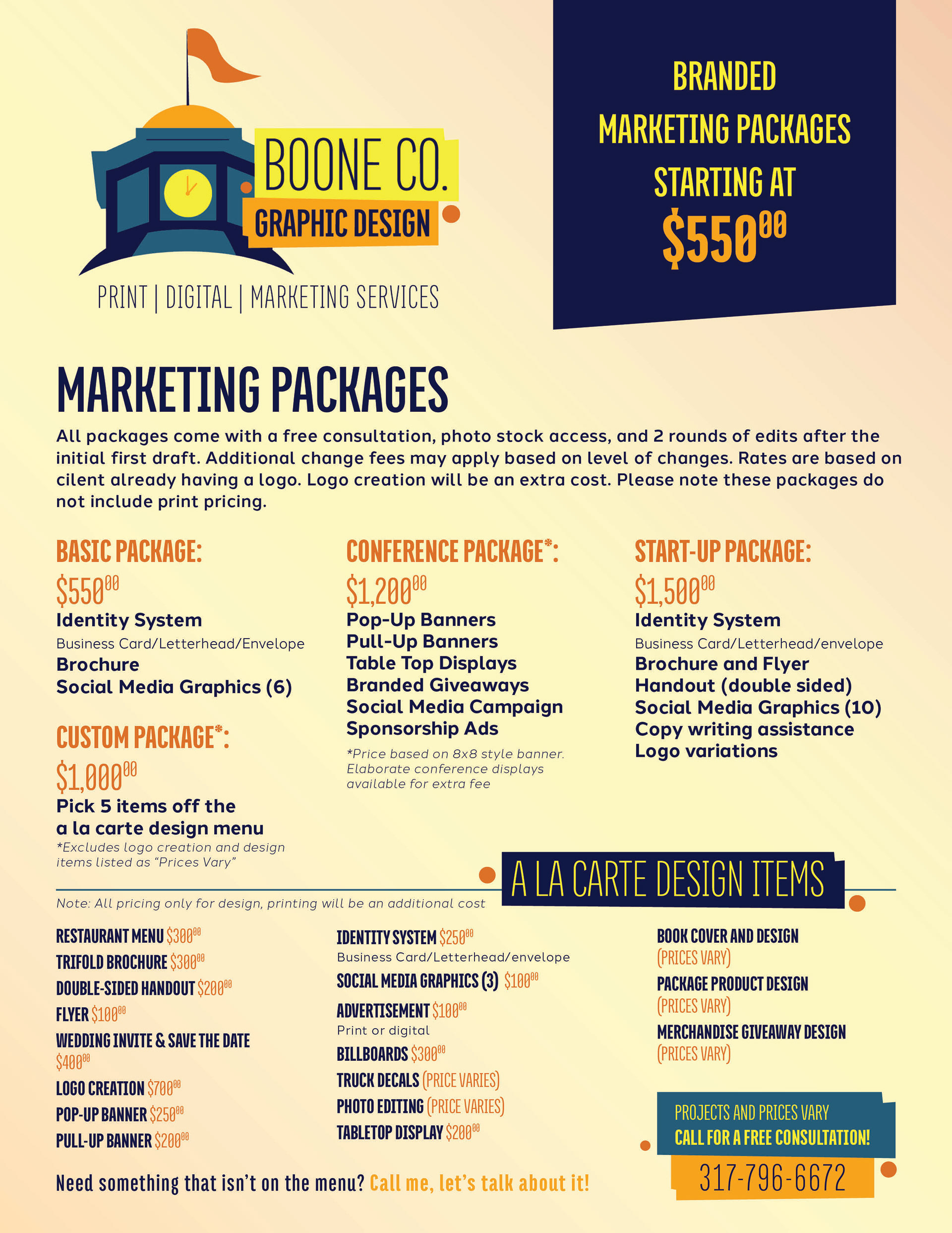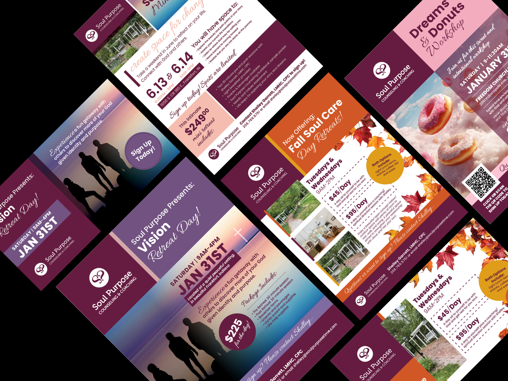 Need just a few marketing materials? Can do! Flyers for an upcoming event and graphics to advertise across social media platforms.